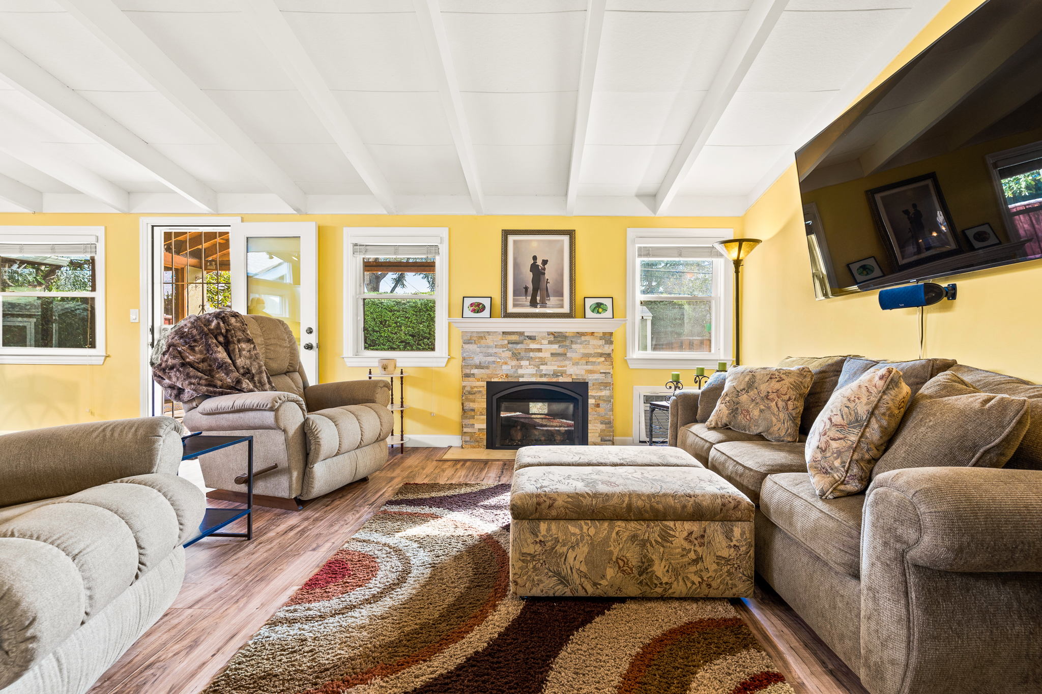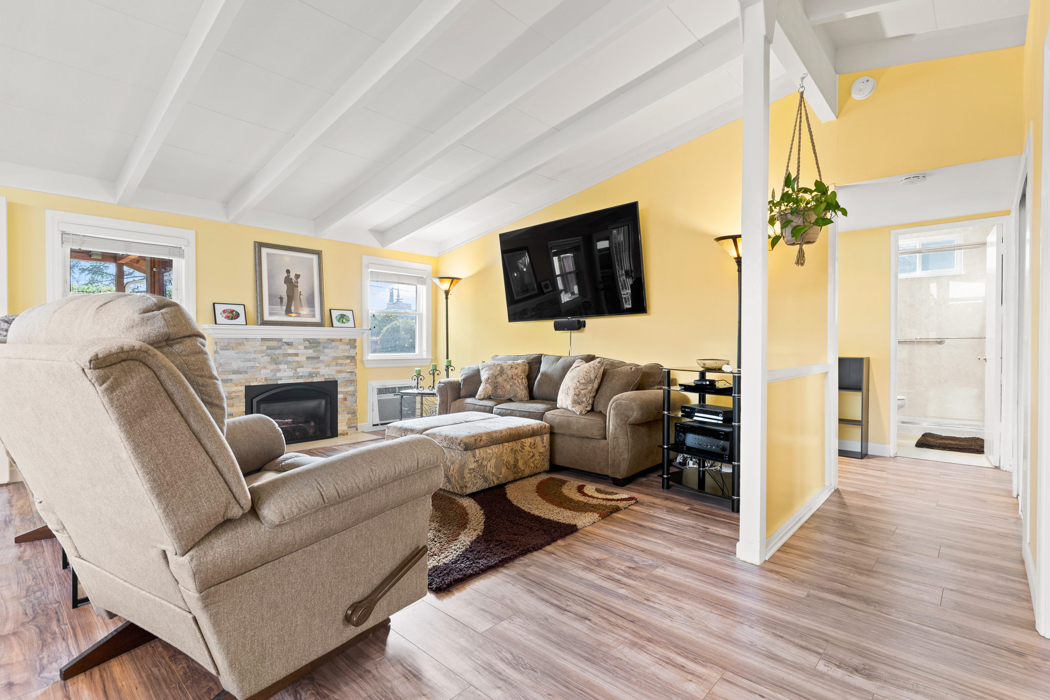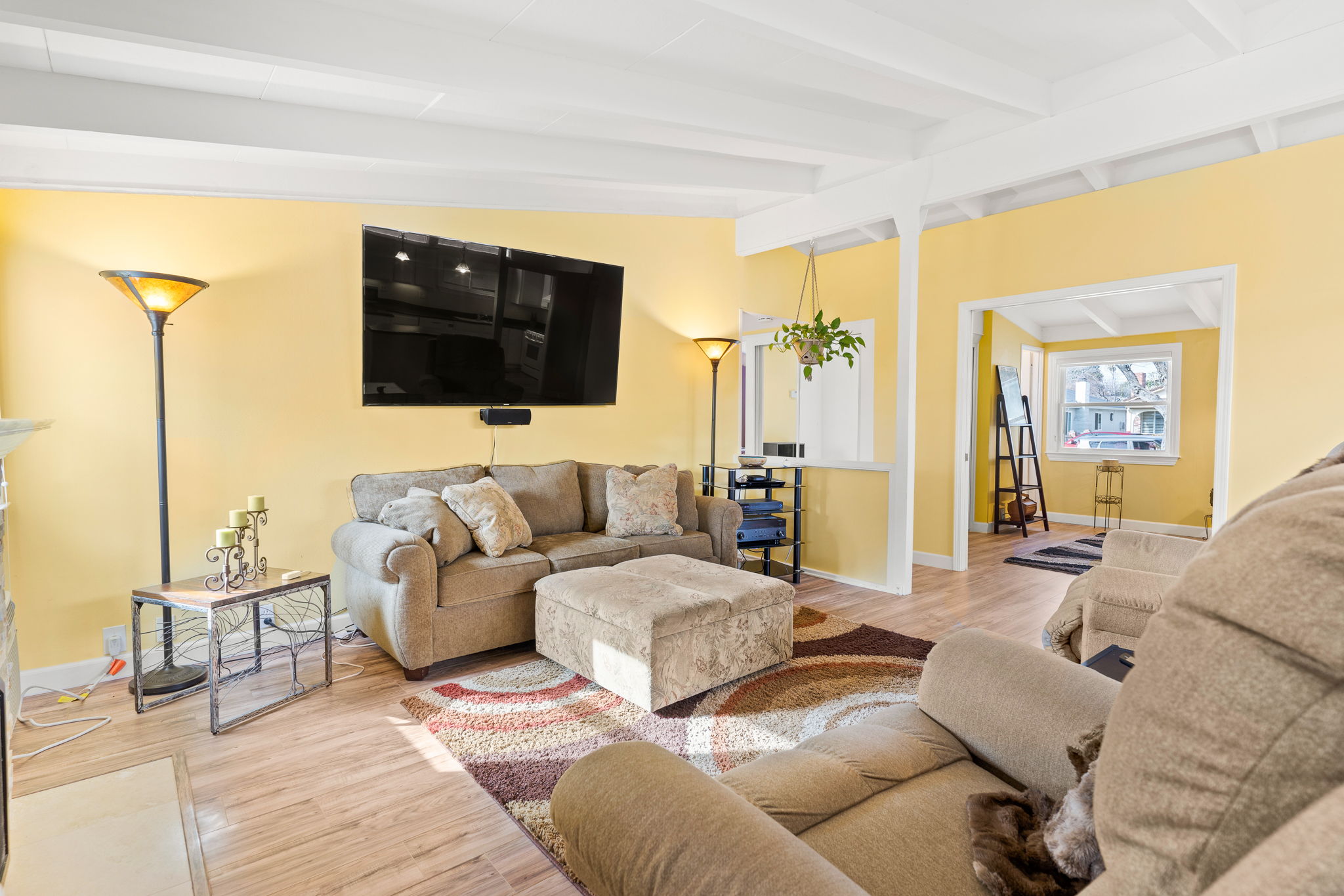 with a bright and airy living room, spacious kitchen, and open floor plan. Spacious backyard perfect for entertaining.