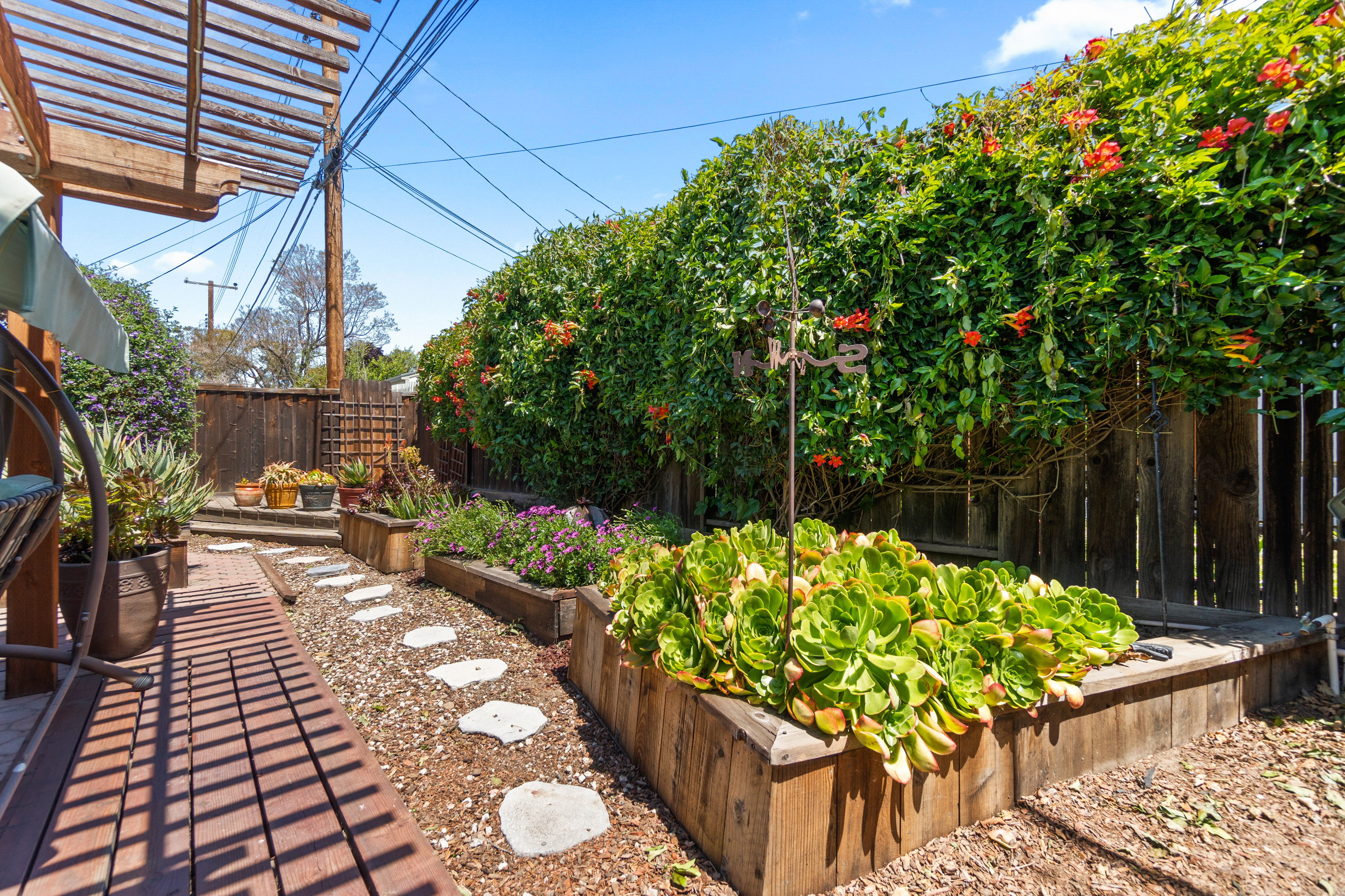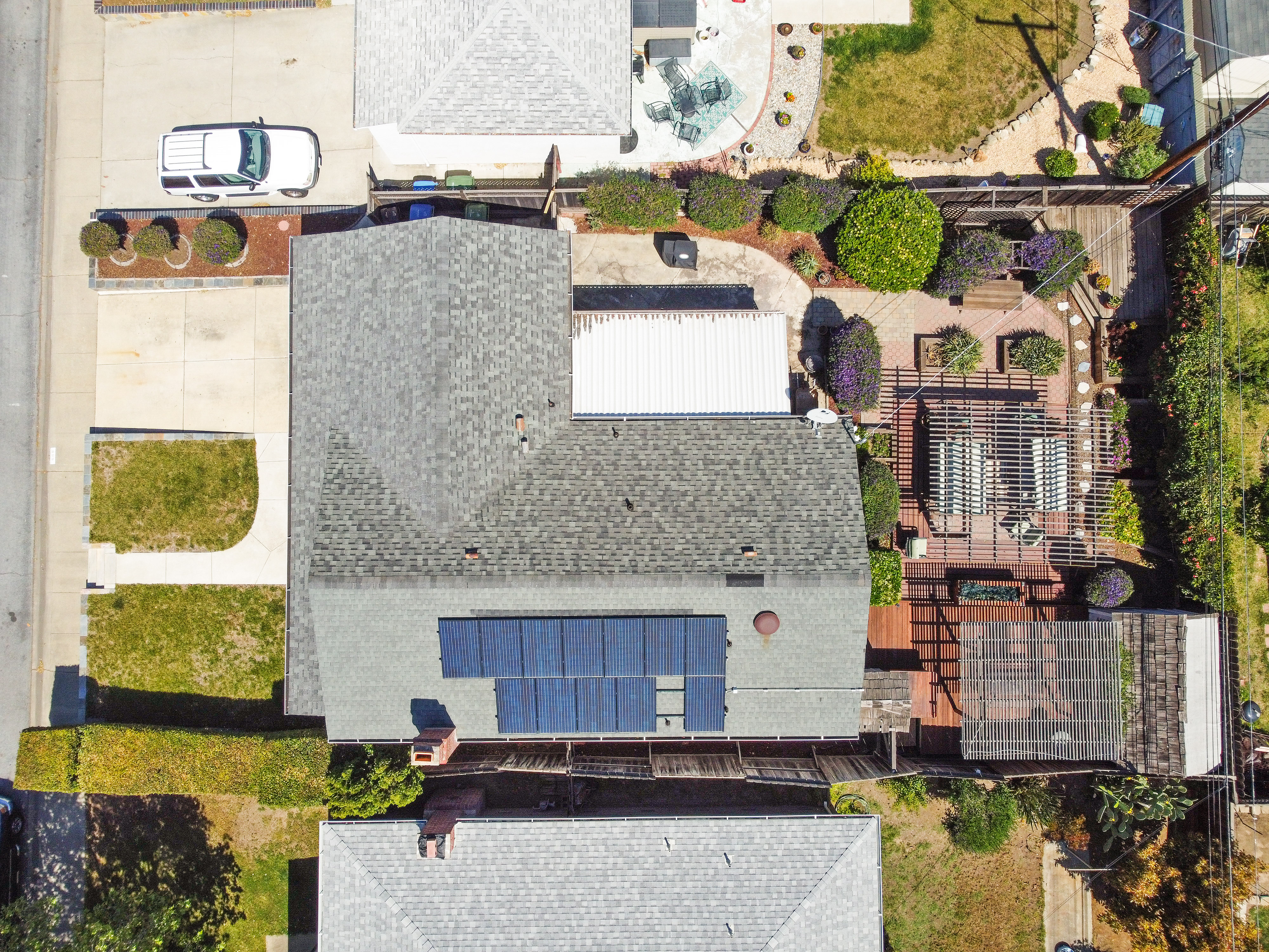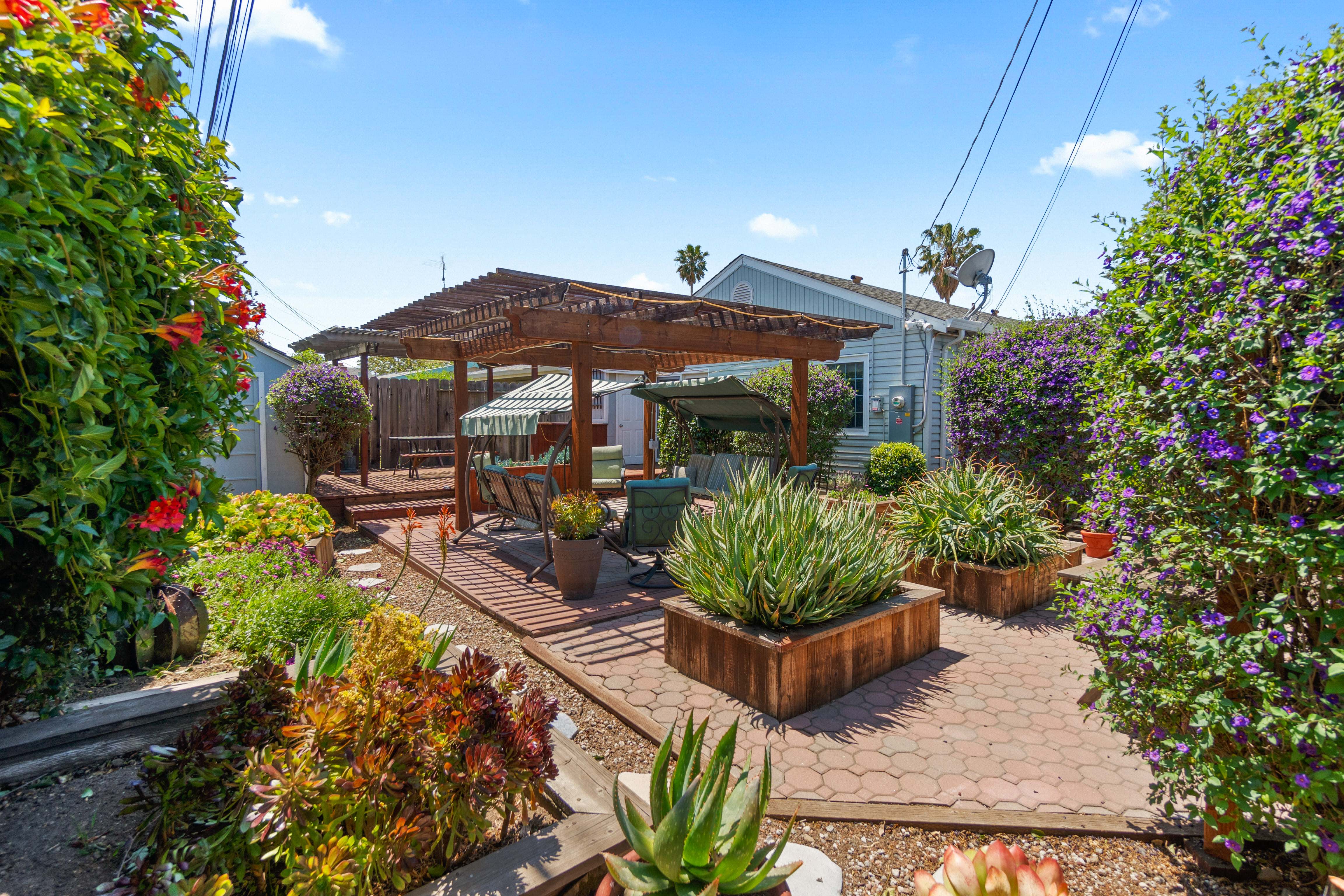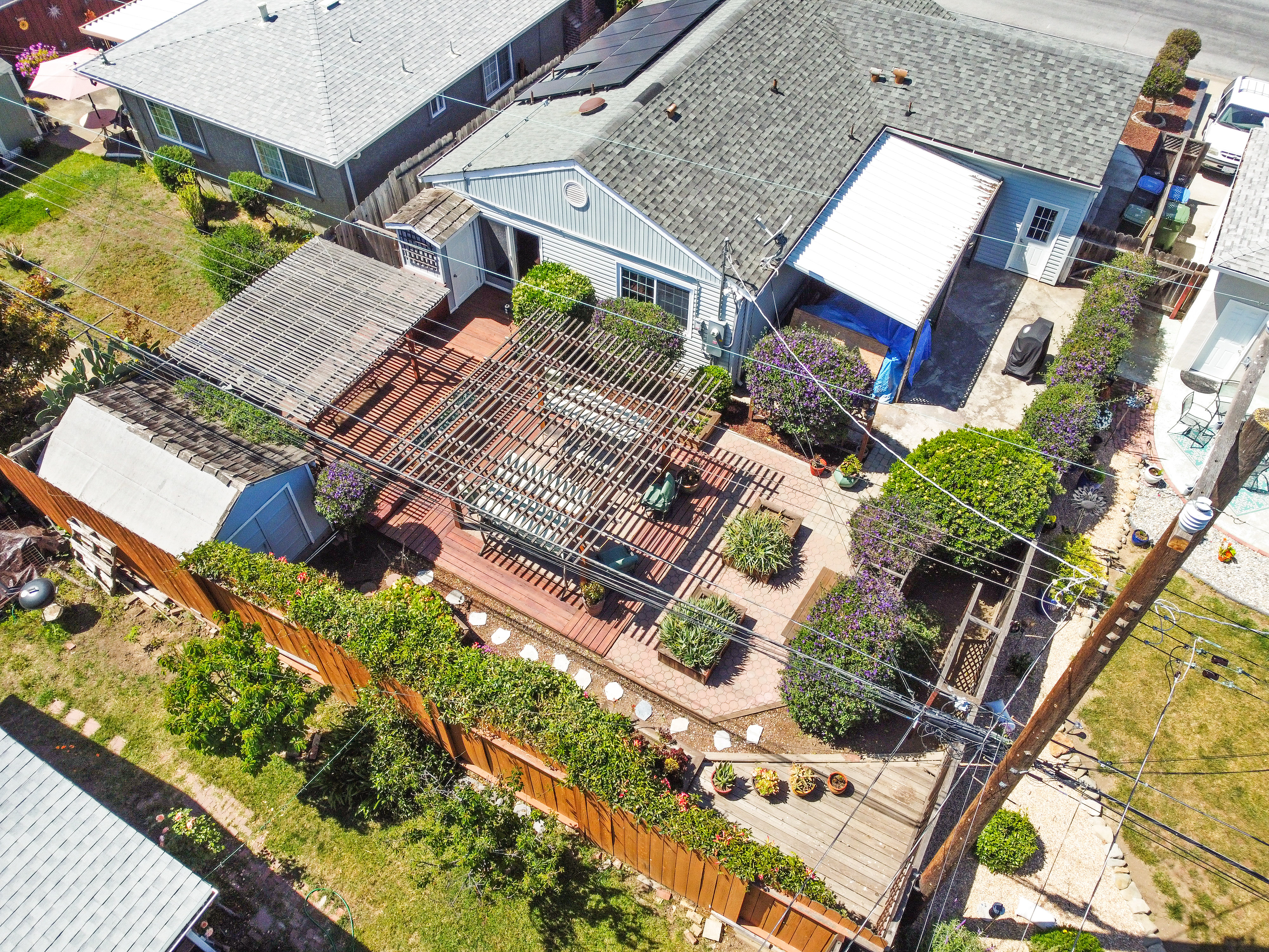 The house is 1,075 square feet and has three bedrooms and two bathrooms, with the third bedroom perfect for an office for a Work-From-Home situation. The 5,200 square feet lot features a large backyard with built-in structures to entertain many guests. The solar panels on the roof provide near net-zero electric bills.