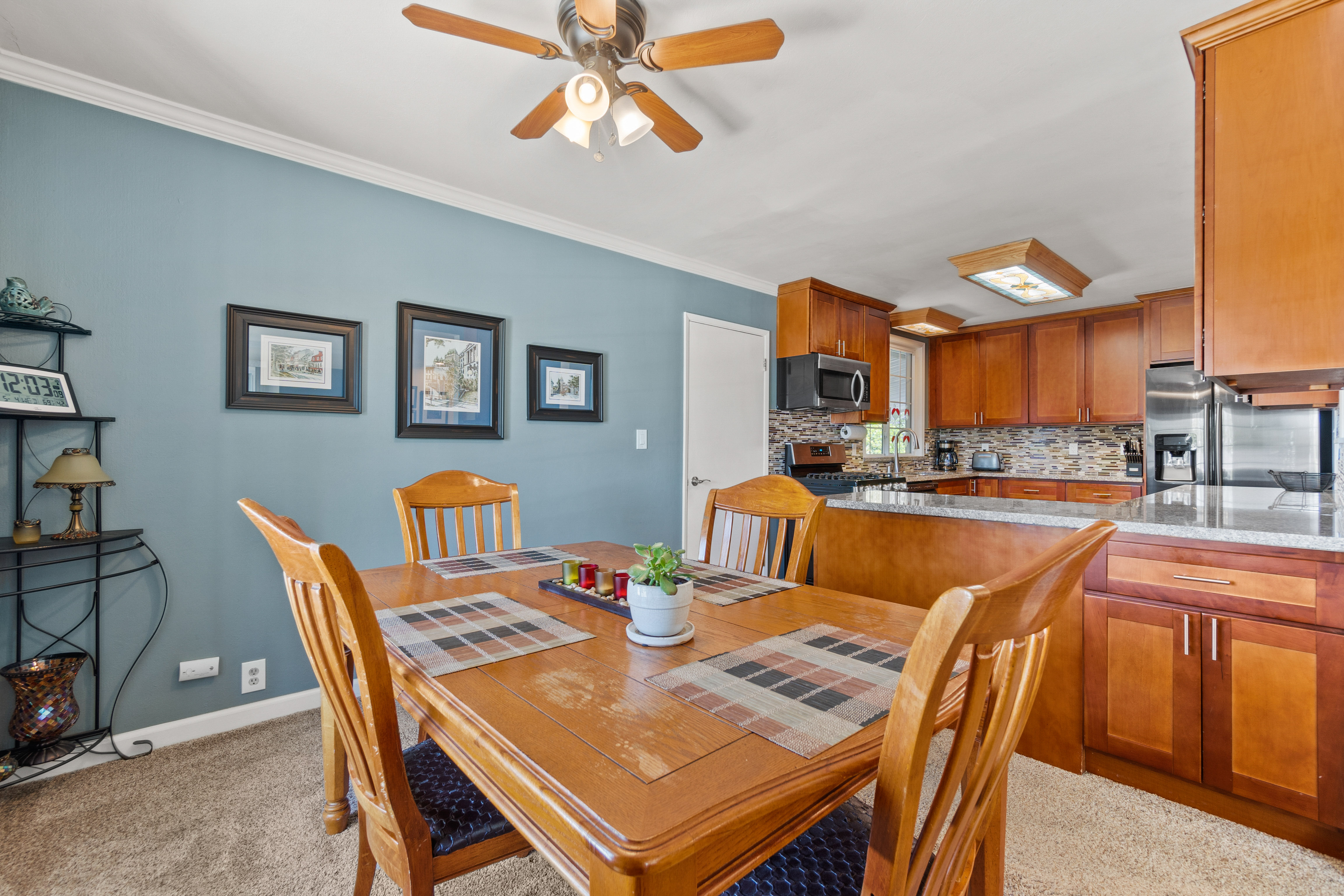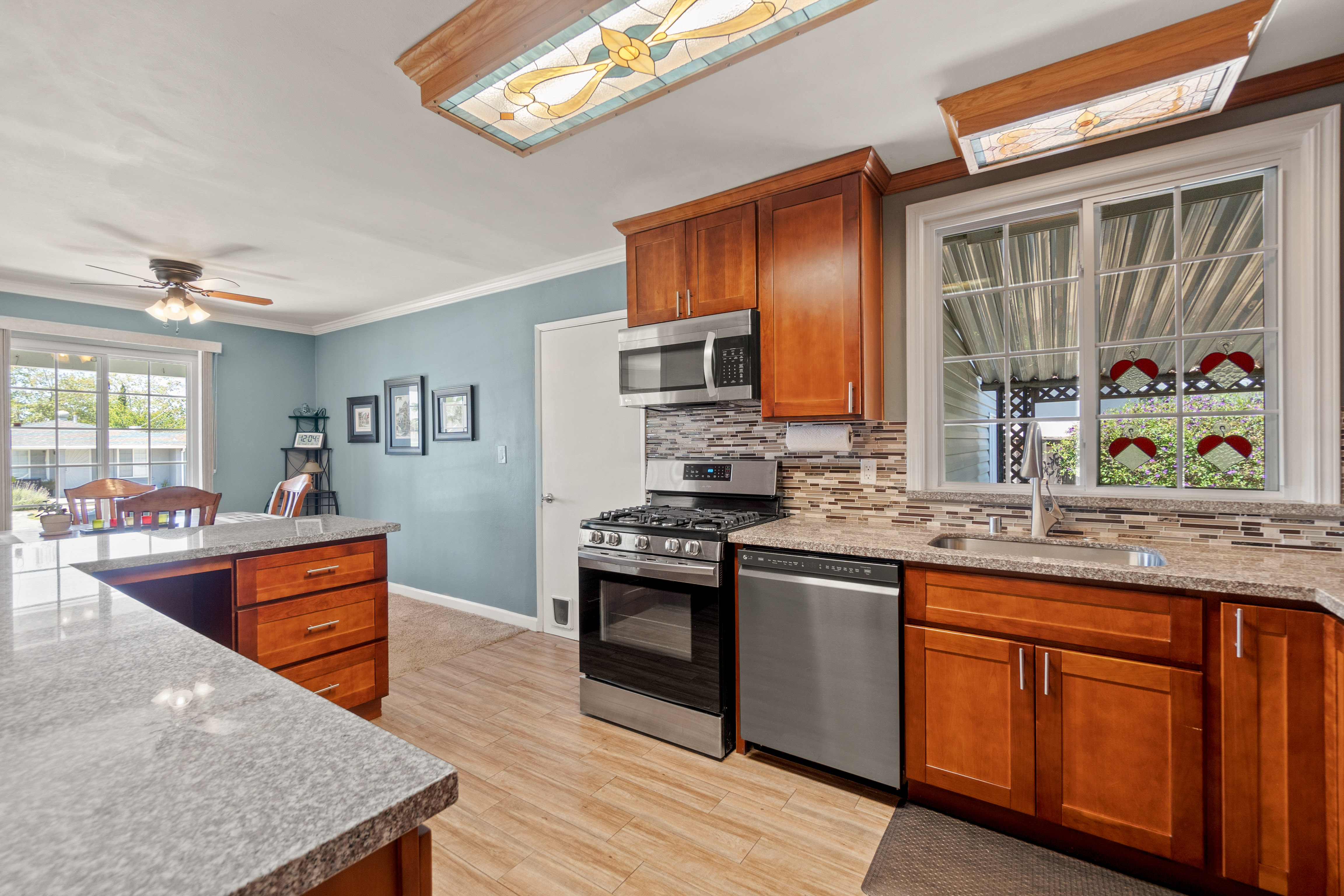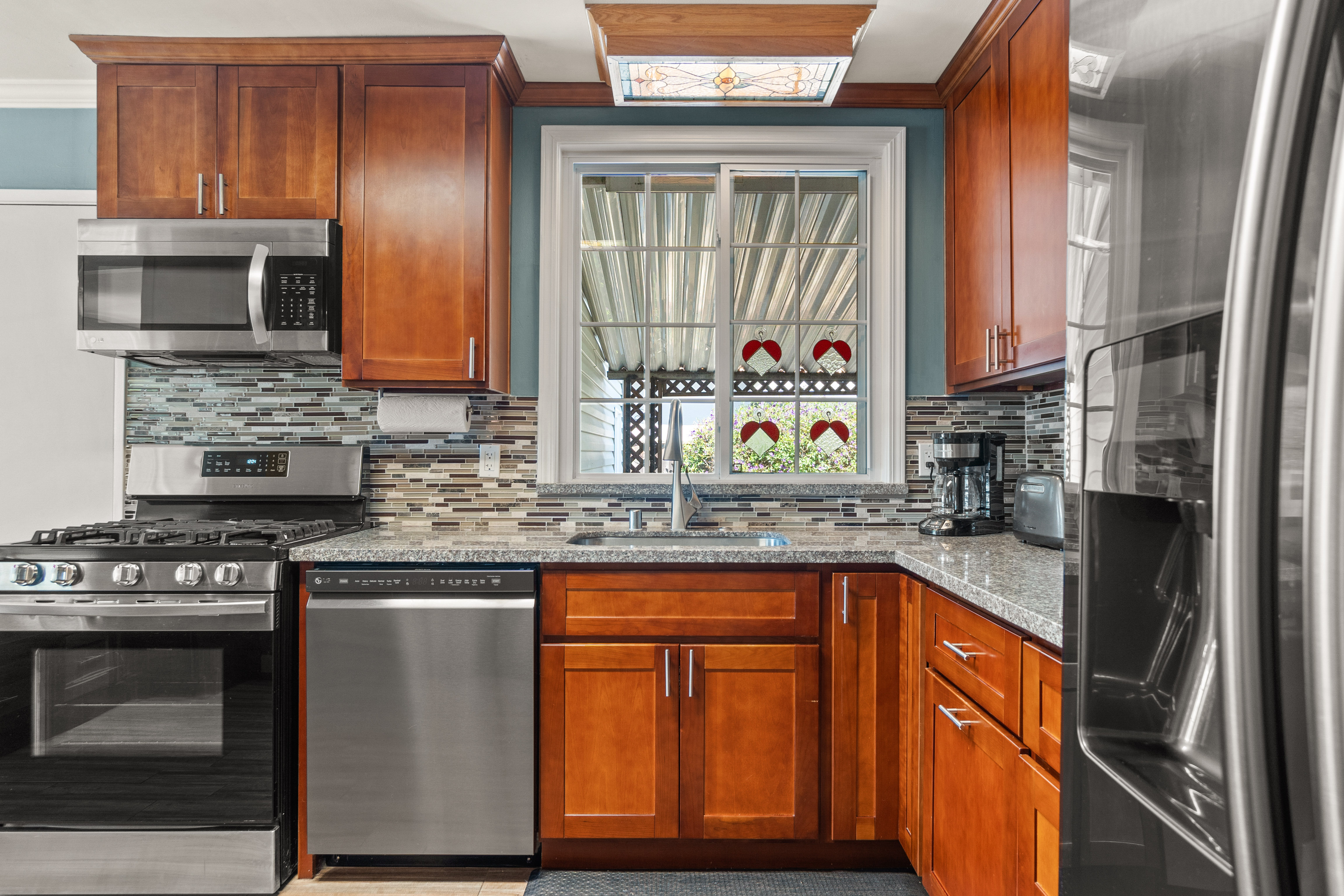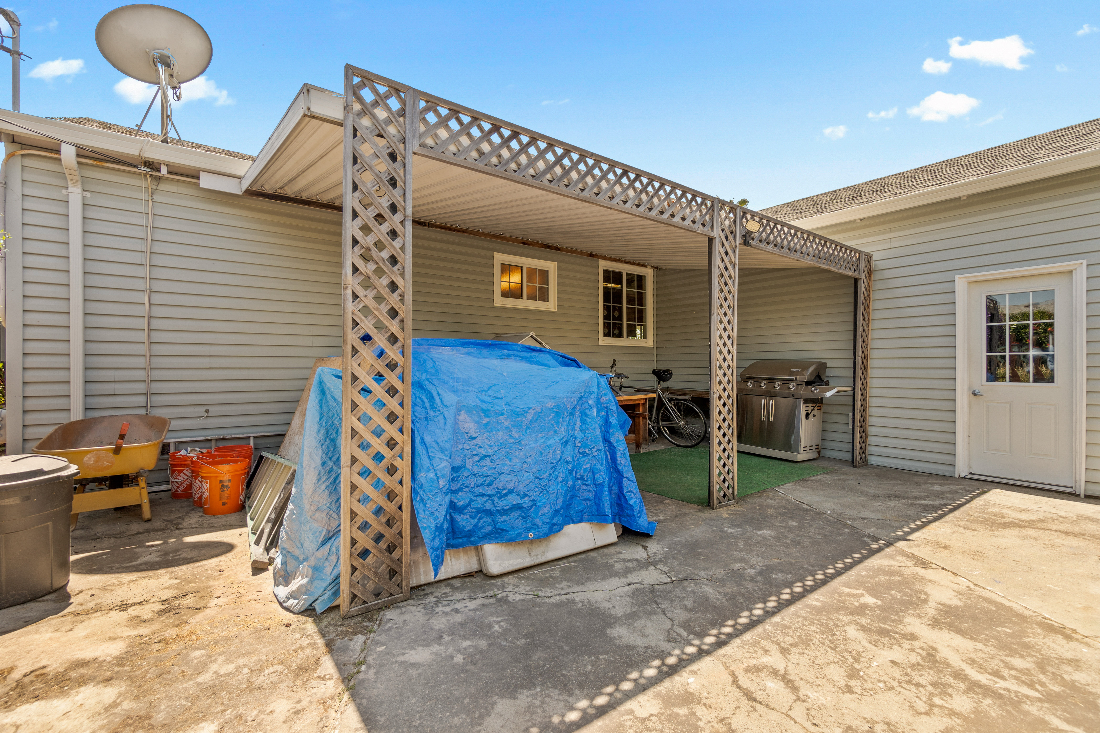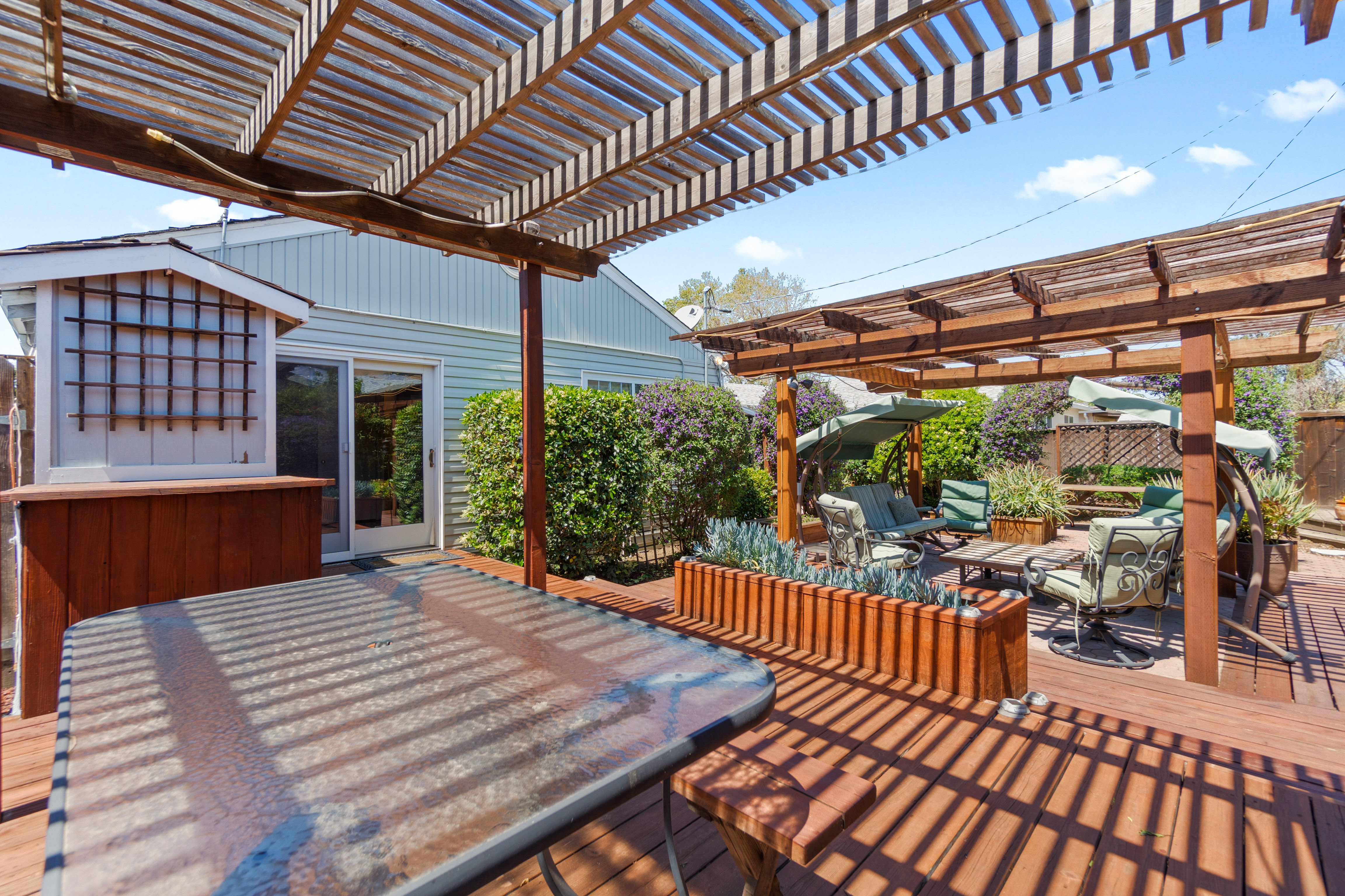 The house is 1,075 square feet and has three bedrooms and two bathrooms, with the third bedroom perfect for an office for a Work-From-Home situation. The 5,200 square feet lot features a large backyard with built-in structures to entertain many guests. The solar panels on the roof provide near net-zero electric bills.